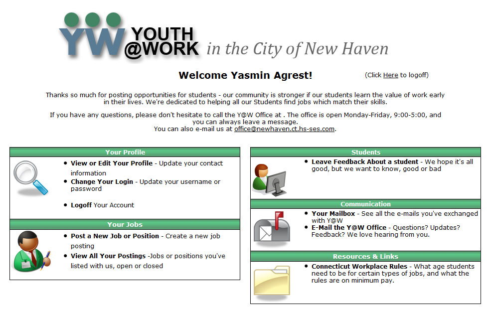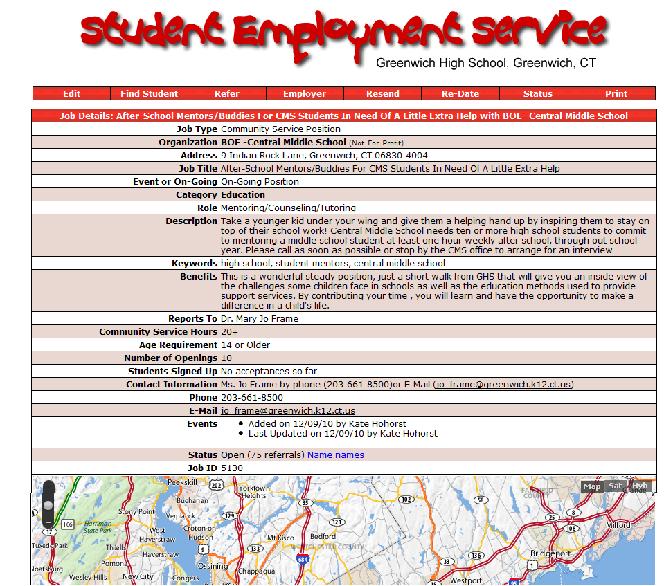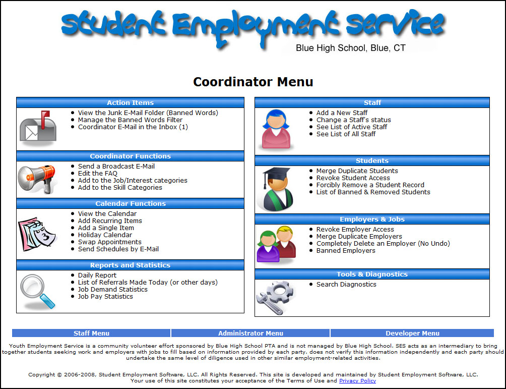 Until closing in 2024, Student Employment Software supported high schools and communitiy groups offering part-time and full-time jobs, internships and community service opportunites in towns and cities in the tri-state area. The system worked seamlessly to communicate to students, employers and staff, collecting all necessary material and keeping all users up-to-date.
